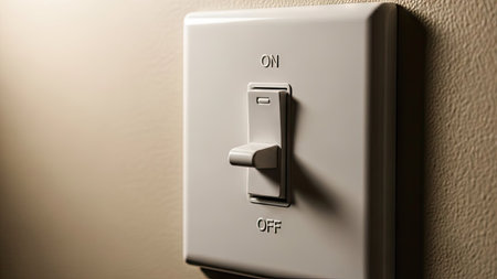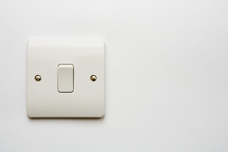 Modern minimalist light switch on a clean white wall representing control and energy efficiency