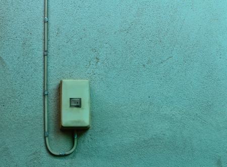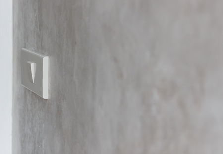 Light switch button on the blue cement wall. Energy use in home. Electricity consumption.