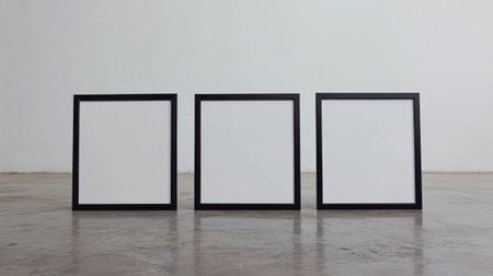 3 black frames on the floor, empty white wall in the background, bright room, natural light, minimalist style, close-up shot, hyperrealism, photorealistic --chaos 30 --ar 16:9 --v 6.1 Job ID: ec208317-5817-4c0d-99a3-c903e9e66009