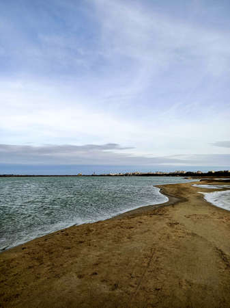Sandy beach of seashore of Black sea in winter