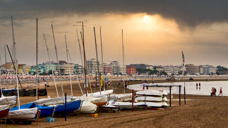 rimini beach beautiful sunset with bright colors and sea
