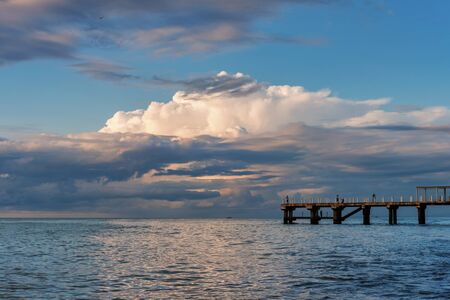 pier and a beautiful cloudy sky above the sea, long exposure