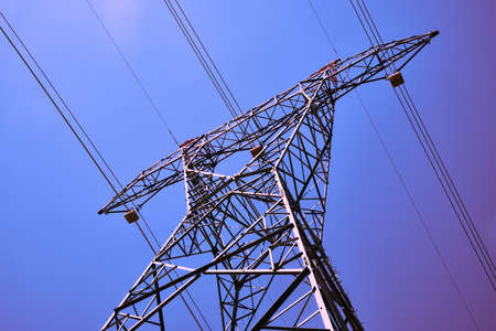 Electric power pylon and overhead lines tower used transmit electrical energy