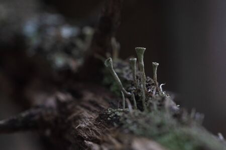 Green moss in the spring forest. Selective focus macro shot with shallow DOF.