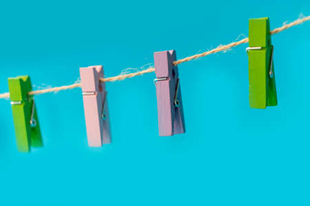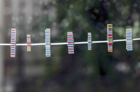 Colorful of wooden clothespins on a rope