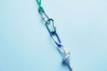Ropes with lobster clasps on color background