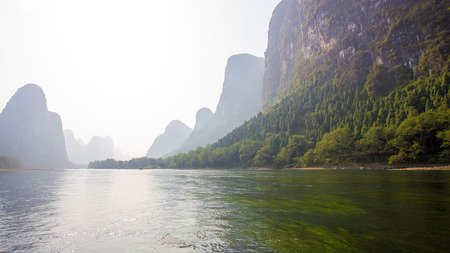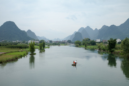 Yu Long river and Karst mountain landscape in Yangshuo Guilin, China. H