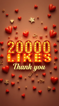 Celebratory display of 20000 likes with hearts and chocolates for appreciation