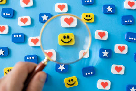 Digital adult chat communication interface, emoji, emotions, icons, internet, lifestyle, mobile, online, people, smartphone users. Social Media Web Viewer Technology.