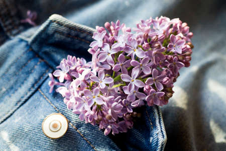 Macro image of spring soft violet lilac flowers, natural seasonal floral background. Can be used as holiday card with copy space.