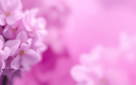 Spring concept - fresh lilac flowers on pastel pink background with copy space