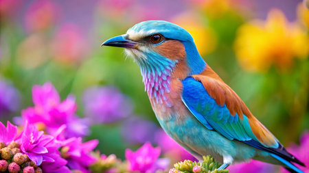 The lilac-breasted roller (Coracias caudatus), close up bird photo