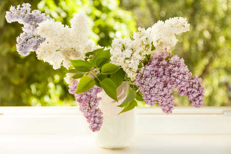 Still life with lilacs, a bouquet of lilacs in a vase, lilacs near the window