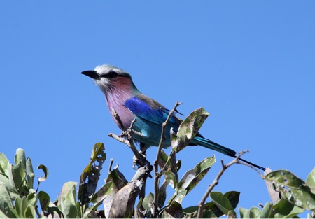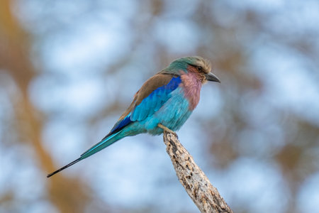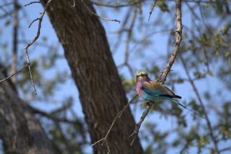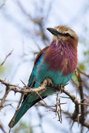 Lilac-breasted roller (Coracias caudatus)vsitting on a branch in Kruger National Park - South Africa