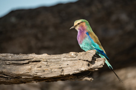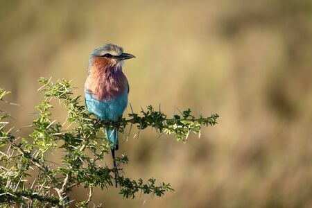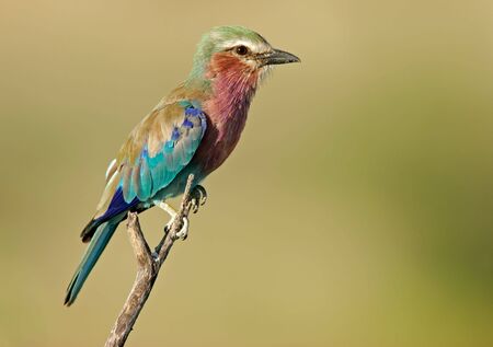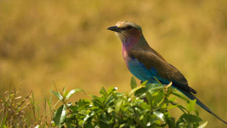 An rarly morning shot of a lilac-breasted roller,in the Serengeti national park, Tanzania