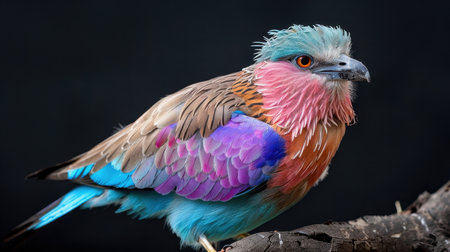 Bird Lilac roller on black background. Lilac Breasted Roller Perched on a Branch.