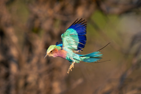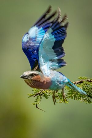 Lilac breasted roller, Coracias caudatus, in Kruger National Park, South Africa