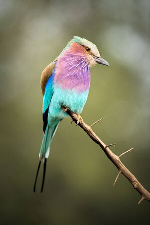 Lilac-breasted roller, Coracias caudatus, single bird on branch, South Africa