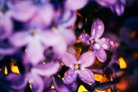 Beautiful macro photo of the beautiful purple lilac with waterdrops