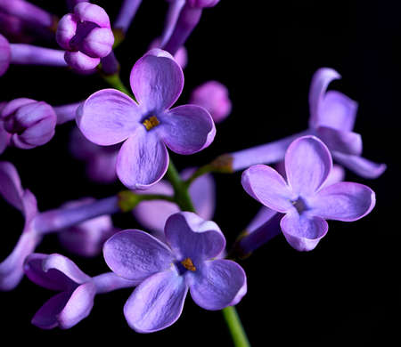 Shallow depth of field (selective focus) and macro image with purple lilac flowers.
