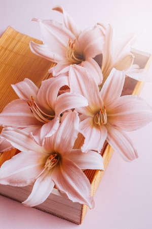 Natural flower background. Vintage blooming lily flowers.
