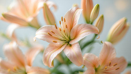 AI Generated. Peach Lilies Blossom Close Up Floral Beauty