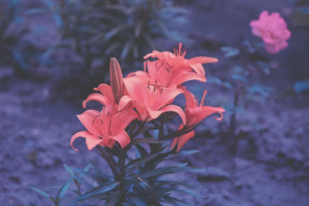 Beautiful lily flowers in the garden. Vintage style toned