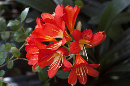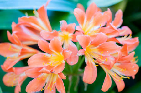 Orange clivia flowers background. Family of Amaryllis.
