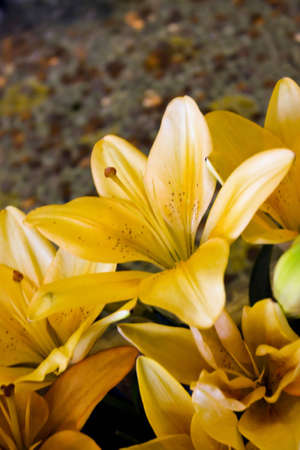 Lily yellow flowers. Floral background. Natural backdrop