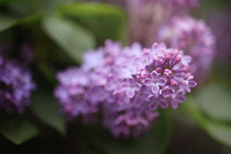 A selective focus of purple lilac flowers with soft light