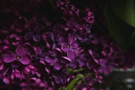 A bouquet of lilacs. Close up. Beautiful purple violet blooming lilac flowers. Greeting card.