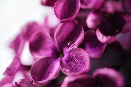 Beautiful macro photo of the beautiful purple lilac with waterdrops