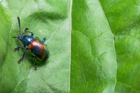 Chrysochus chinensis, The leaf beetle of Chinese milkworm is seen on a leaf. A close-up