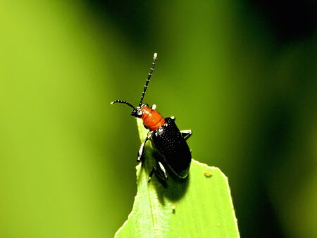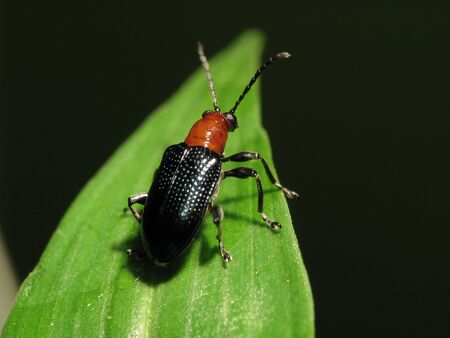 leaf beetle in natural habitat,Lema (Petauristes) honorata Baly