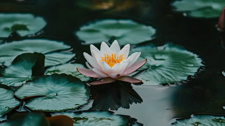 A stunning water lily blooms gracefully in a tranquil pond, surrounded by lush green leaves, capturing the essence of nature's beauty and serenity.
