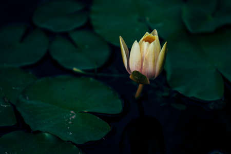 close-up of beautiful water lily on dark water