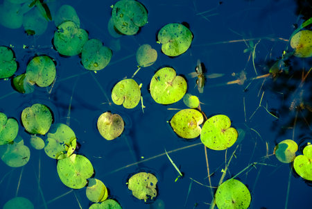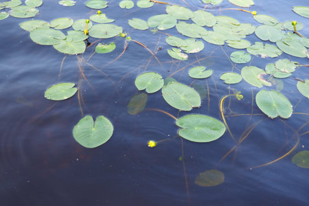 Water lily pads in the green forest, natural background, nature
