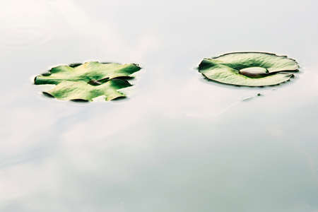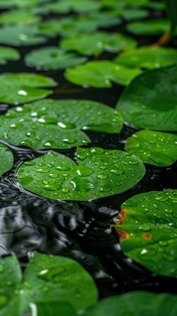 Waterlily leaves in a morning rain