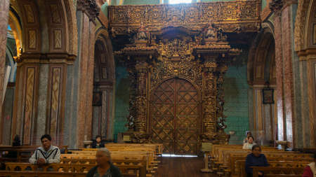 Cusco, Peru - Dec 5, 2022: Altar and interior of the Church of La Compania de Jesus