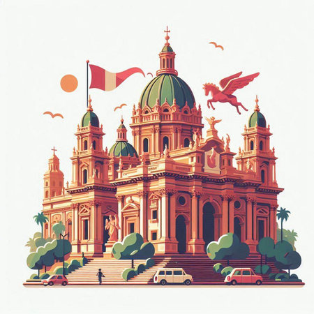 Beautiful view of the San Francisco Cathedral in Lima, with its classical architecture.