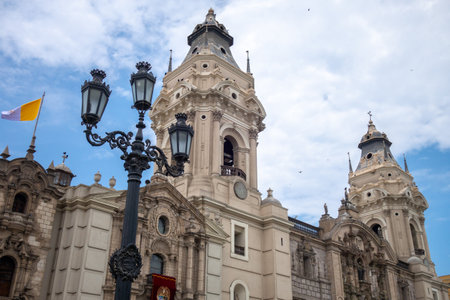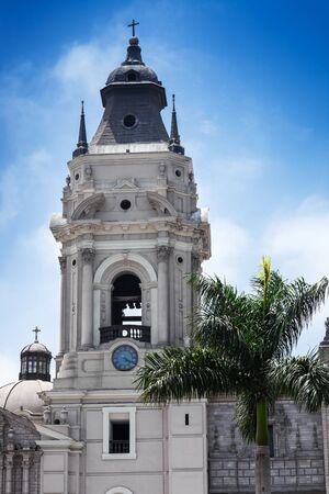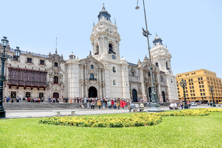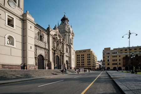 Lima, Peru - Mar 13 2017: View of the Cathedral Parroquia del Sagrario in Plaza de Armas of the capital city Lima Peru