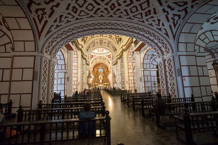 The interior of the Saint Francis Monastery and the Basilica Cathedral of Lima, otherwise Lima Cathedral, is a Roman Catholic cathedral located in the Plaza Mayor of downtown Lima, Peru.