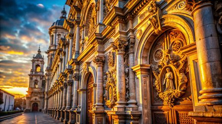 Arequipa, Peru, the Church of St. Augustine, with a baroque facade., generative IA
