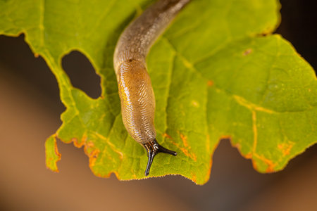 The Spanish slug spreads across Europe and is an invasive pest in fields and gardens. It probably doesn't come from Spain. Close-up.