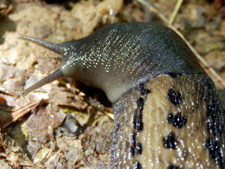 Slug head detail on dirt road. Munilla, La Rioja.