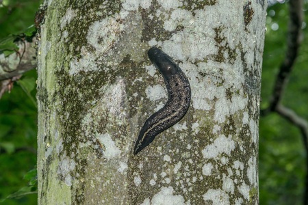 Beautiful black slug shucked by dragging to reach the destination