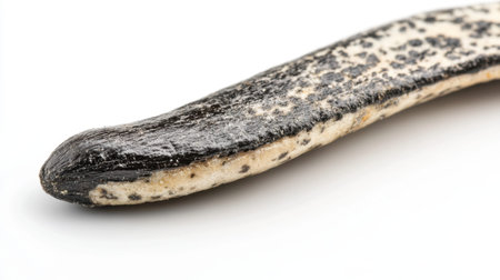 This image showcases an elongated object featuring a striking black and white speckled design, perfect for nature enthusiasts and design projects seeking organic elegance.