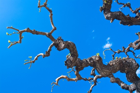 Dry tree branches over blue sky