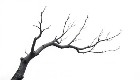 Minimalist black and white tree branch on white background