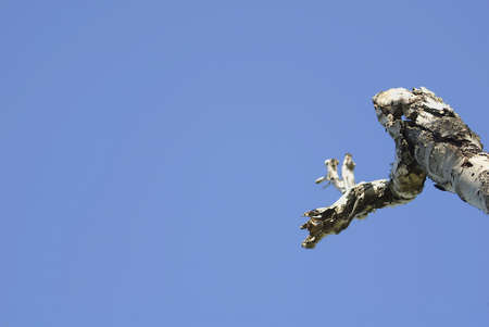 Dead tree isolated on blue sky background, Dead branches of a tree.Dry tree branch.Part of single old and dead tree on blue sky background.